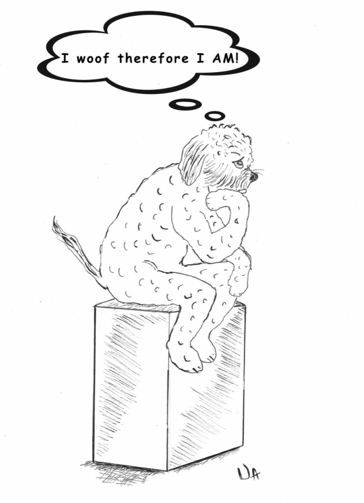 You humans think you’re so clever. You think you invented it all— the internet, influencers, fake news, trolls… But we’ve had that stuff for millennia— our own ways of chewing the cud, tracking things down, sniffing things out. Us dogs had a canine network when you lot were still living in caves. We call it the SmellNet— and it’s the mutt’s nuts. We came up with You’ve Got SmellMail. And sociable media— (SmellBook) And wi-fi— (Whiffy) And… So, how does that all work? I ask. He looks at me smug as a bug, tail like a yo-yo on speed… Well, every morning I sniff-on at a lamppost with Whiffy, and check out my mates in SmellSpace, post posts on posts, leave likes, comments, shares— and nobody takes the piss. (or I just hang out and chill.) Then I pick up my smell-mails and catch up with the woofs on SmellBook... Who’s bonking who? Has Hilton, the celebrity Chihuahua, lost any weight? Are Rambo the Rottweiler and the Pitbull next door still fighting over the bone they buried all those years ago? I nod. It all sounds depressingly familiar. Just as he woofed, in fact: fake news, celebs, bitching, trolls… But then he goes all philosophical on me. You humans waste so much time. All this “To be, or not to be” What’s that all about? You’re barking up the wrong tree. I Woof, therefore I Am is all you need to know. We dogs realised a long time ago that time was more like a small round thing than a long thin thing. More like chasing your own tail than an endless piece of string, or an infinitely long ladder, or whatever else you humans think it is. Us dogs are like Zen Buddhist monks. We live in the present tense— not mourning the past, or fearing the future. We’re dogged. We’re stoic. We accept what life throws at us— which is just as well, considering some of the smelly stuff that gets thrown our way and just misses the fan.